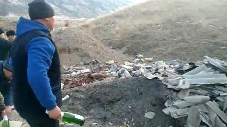 В Чаткале молодежь села скупила алкоголь и уничтожила его. Видео